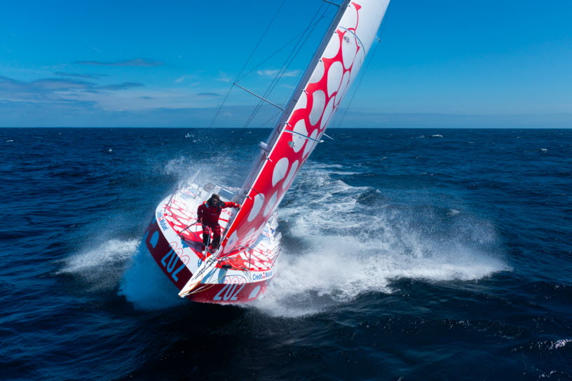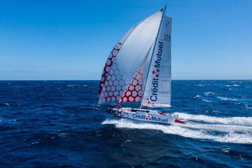 Victorieux du prologue Lorient-Cadix et de la première étape entre Cadix et Mindelo (Cap-Vert) en septembre, troisième – un coup dur – de l'étape monstre entre Mindelo et l'île de la Réunion en octobre, vainqueur de la 3e étape entre La Réunion et Sydney (Australie) en décembre, puis déclaré à égalité avec Belgium Ocean Racing – Curium à Valparaiso (Chili), terme de la 5e étape, le Class40 Crédit Mutuel, a fait quasiment le plein de points avec à son bord, tour à tour, Ian Lipinski, Antoine Carpentier, Amélie Grassi et Alan Roberts. En cumulant les succès, la team Crédit Mutuel a su revenir à égalité de points avec les leaders à une étape de la fin.