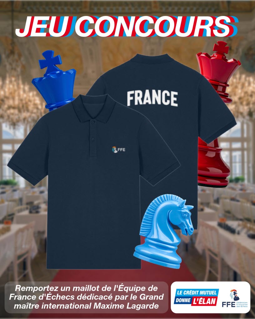La Caisse Fédérale De Crédit Mutuel, Société Coopérative à forme de Société Anonyme, au capital de € 5.458.531.008, Immatriculée au RCS Strasbourg B 588 505 354, dont le siège social est situé au 4 rue Frédéric-Guillaume Raiffeisen à 67913 STRASBOURG CEDEX 9, ci-après dénommée la société organisatrice, organise un jeu qui durera du 19 au 26 avril 2026 à l’occasion des Championnats de France d’Echecs Jeunes Crédit Mutuel d’Albi sur les réseaux sociaux Facebook et Instagram.
