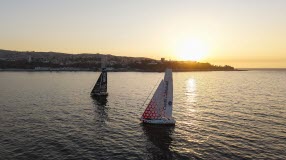 Sur la ligne, les deux bateaux bord à bord, l’incertitude règne. Antoine Carpentier raconte : « On ne se parle pas trop, mais Benoît et Djemila font un petit selfie avec nous juste derrière eux. Quand nous pensons que nous avons coupé la ligne, on les prévient. Eux nous disent qu’ils ne l’ont pas encore coupée ; je leur dis qu’ils ont peut-être un problème de précision de leurs points virtuels. Dans ces circonstances, c’est hyper compliqué de départager deux bateaux au mètre-près… ».