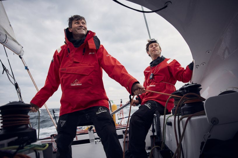 À bord du Class40 Crédit Mutuel, Ian Lipinski et Antoine Carpentier vont retrouver leurs petites habitudes. Eux qui ont été séparés par un principe de bonne répartition des efforts, chacun cédant à Amélie Grassi puis Alan Roberts le soin de piloter le bateau rouge et blanc au plus vite et au plus sécurisant. Parce que la Globe 40 est une affaire de longue haleine, d'endurance et de rudes efforts, chacun a ainsi connu ses temps de récupération. On pourrait dire qu’il en est de même pour le bateau qui, à l’instar de ses concurrents, a été l’objet de soins attentifs. « On a géré un certain nombre de petits soucis, il reste de la bricole, des réglages à affiner pour que les systèmes fonctionnent bien, mais nous ne sommes pas les seuls dans ce cas », résume calmement Ian Lipinski, « De la même manière, le sujet de préoccupation principal est le jeu de voiles qui a déjà beaucoup travaillé, et il faut que les voiles tiennent. Après tant de milles, nous sommes tous dans le même cas de figure ».