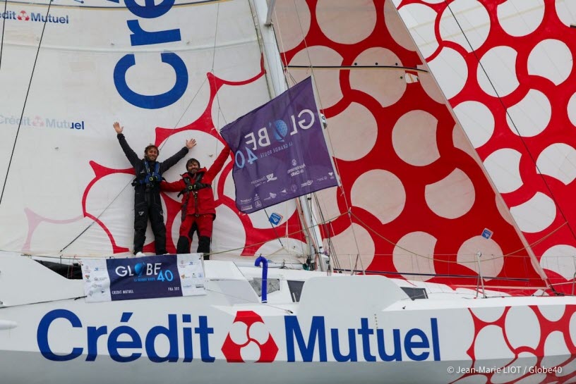 Ian Lipinski, Antoine Carpentier et le Class40 Crédit Mutuel premiers à Lorient ! Cette victoire au bout du suspens et de l'effort, conquise de mains de maitres sur le gong, consacre des mois d’investissement sans faille des membres de l’équipe Crédit Mutuel. Elle met un terme particulièrement émouvant et joyeux à une aventure collective de 223 jours, dont 124 jours, 7 heures et 54 minutes en mer pour les marins Ian Lipinski, Antoine Carpentier, Amélie Grassi et Alan Roberts, qui se sont succédé à bord sur le prologue et les six étapes qui constituaient cette édition de la Globe40. Elle consacre aussi le travail de préparation et de réparation de Sébastien Picault, le directeur technique et de Camille Seassau, la préparatrice, tous deux d’une efficacité redoutable tout au long des 98 jours d’escales cumulées à Cadix, Mindelo, La Réunion, Sydney, Valparaiso et Recife.